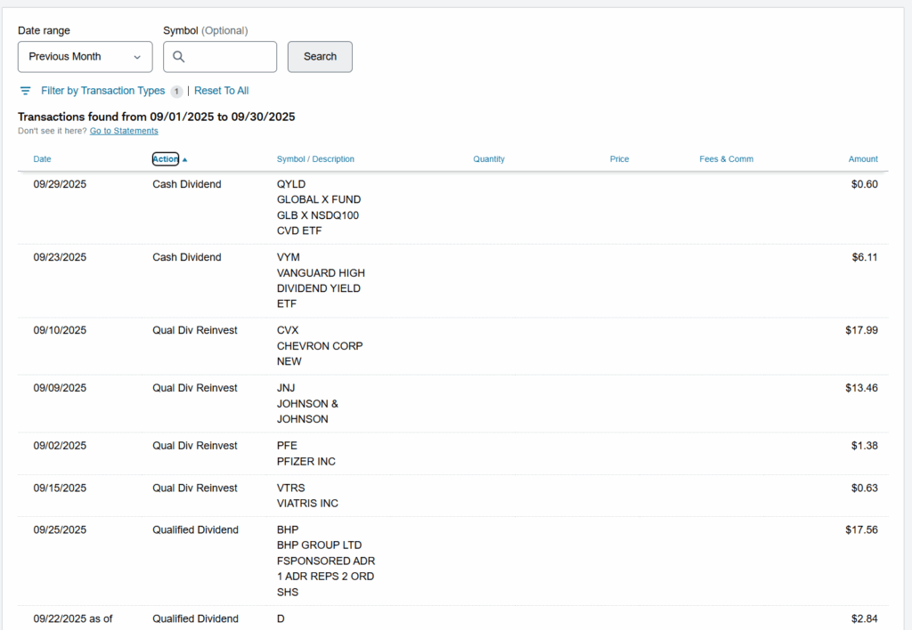2025年9月の配当金が確定していたので報告します。 日付銘柄内容金額09/29QYLDCash Dividend0.6009/23VYMCash Dividend6.1109/10CVXQual Div Reinvest17.9909/09JNJQual Div Reinvest13.4609/02PFEQual Div Reinvest1.3809/15VTRSQual Div Reinvest0.6309/... Money